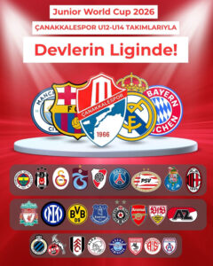 Çanakkalespor U12–U14 takımları, Nisan 2026’da Antalya’da düzenlenecek olan “Junior World Cup” devler ligi turnuvasında Avrupa’nın farklı liglerinden takımlar ile mücadele edecek. “Sadece Kulüp Değil, Bir Şehir Projesi” olan Çanakkalespor sayesinde, genç futbolcularımız uluslararası arenada vitrine çıkarak büyük kulüplerde forma giymek için fırsat yakalayacak…